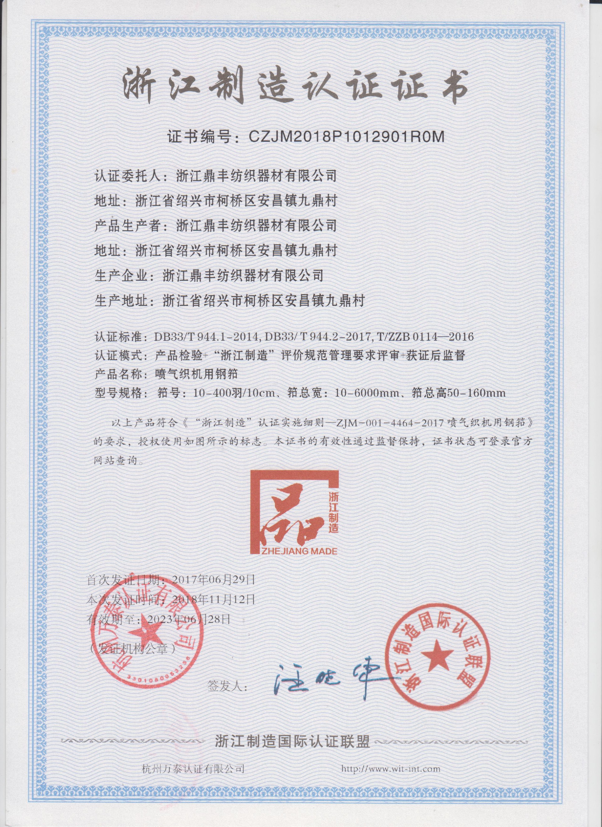 公司現(xiàn)有固定資產(chǎn)6000余萬元,員工300余人,現(xiàn)具有年產(chǎn)噴氣異型筘12萬米,劍桿筘32萬米,噴水筘5萬米,綜框20萬片,鋼片綜2億片,停經(jīng)片1.5億片, 織軸1.2萬套的生產(chǎn)能力。公司“越泉”商標被評為“中國馳名商標”。公司通過ISO9001 :2015國際質(zhì)量體系認證,ISO14001:2015國際環(huán)境管理體系認證,ISO45001:2018國際職業(yè)健康安全管理體系認證,噴氣織機用鋼筘和織機用鋁合金綜框獲得“浙江制造”品牌認證,公司擁有自營進出口權(quán),產(chǎn)品暢銷全國并遠銷印度、巴基斯坦、土耳其、埃及、哥倫比亞、意大利等國家和地區(qū)。